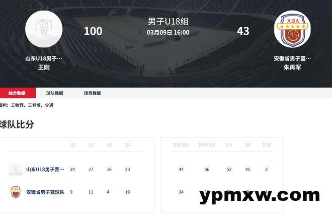 末节决战,山东队火力不减,依旧保持着良好的手感,分差被拉开到了60+。当然,山东队也没有赶尽杀绝,而是放慢了进攻的节奏,让安徽队追了一些分。最终,山东U18男篮以100-43大胜安徽队57分,斩获了4连胜,继续高歌猛进,领跑积分榜。