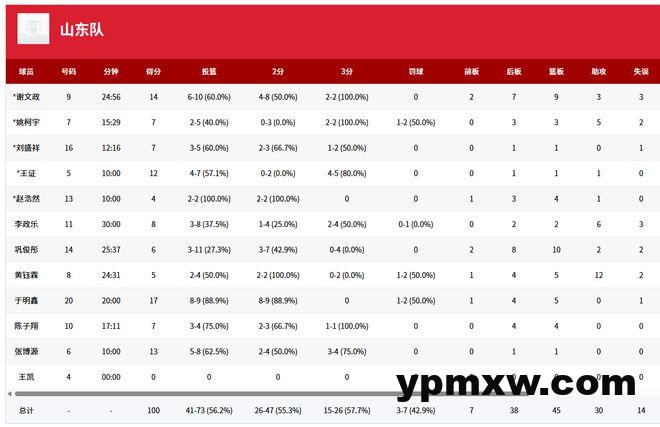 山东男篮在这场比赛中发挥的十分出色,11人轮番登场,人人都有得分入账,4人得分上双,谢文政14分9篮板3助攻,王证12分,于明鑫17分5篮板,张博源只打了10分钟,8投5中,拿到13分。而巩晓彬爱子巩俊彤替补登场打了25分钟,他11投3中,手感并不太好,只拿到6分,但却抢下10个篮板球,护框能力可见一斑。