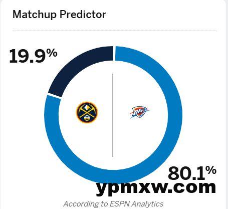 雷速体育3月10日讯 今日NBA常规赛雷霆vs掘金。 ESPN预测本场比赛雷霆胜率高达80.1%,掘金仅有19.9%。 目前雷霆52胜11负排名西部第一,掘金41胜22负排名西部第二。 KY体育新闻中心 KY体育·(中国)官方网站新闻中心 6球2助攻,姆巴佩在近6个西甲主场每场都能够参与进球 这都不进?莫德里奇无私横传,维尼修斯踢呲