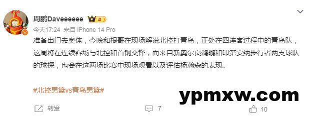 至于下一场青岛客场对阵北京的比赛,步行者球探(Hansen Wong)与鹈鹕球探(Jordi)也将继续考察,而杨瀚森有望参加今年的NBA选秀。