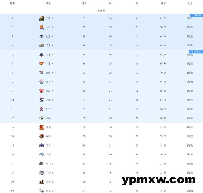 辽宁队目前是25胜13负排名积分榜第6的位置,他们在前一天原本一度排名第3位,因为多场北京队、广东队等均赢球,使得辽宁队又暂时退出了前四的位置,在提前锁定季后赛门票的情况下,对于现在的辽宁队来说,就是要力争能够锁定1/4决赛区,而他们也具备这样的实力,辽宁队在之后的赛程不是那么的艰难。最近两场也是连续击败了青岛队和吉林队。