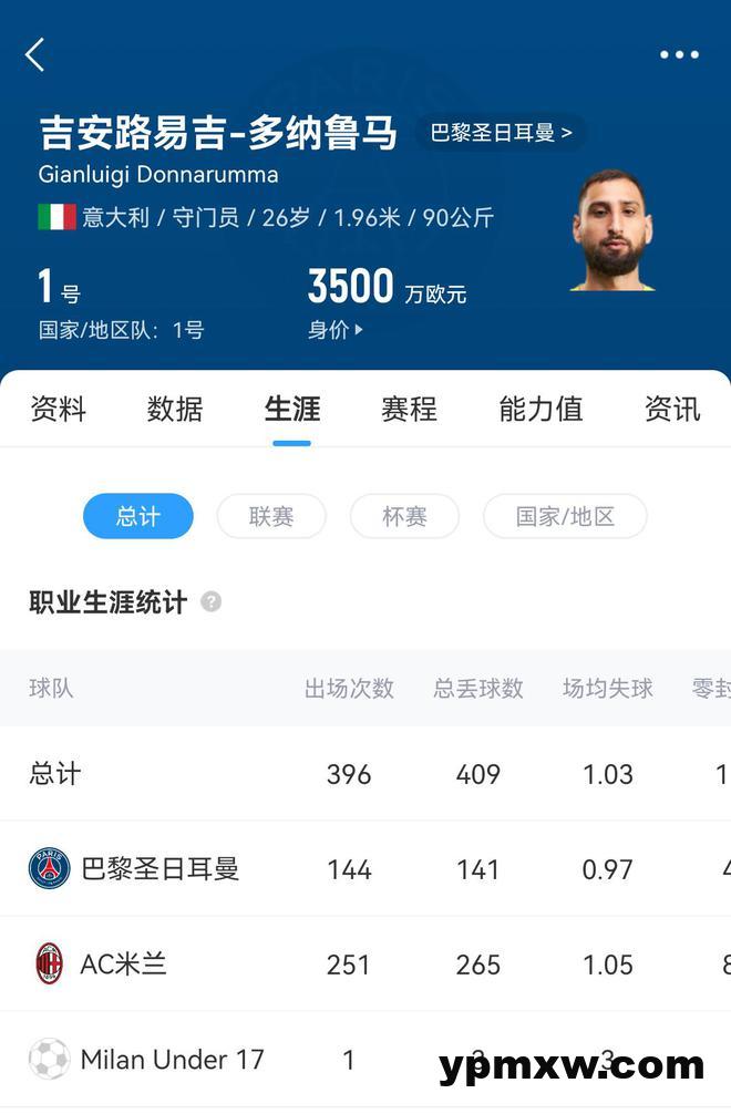 直播吧03月12日讯 2015年10月25日,多纳鲁马以16岁242天的年龄成为意甲最年轻的首发门将,如今接近10年过去,多纳鲁马已经完成了396次俱乐部出场,而他的年龄也仅有26岁。与此同时,他的意大利国家队出场数也达到了70次。