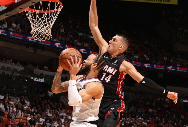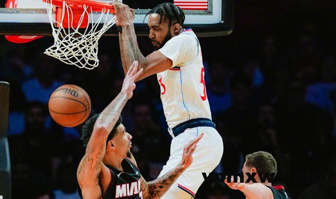 此后罗齐尔外线续上火力,热火追到只差4分。哈登赶紧回来,巴图姆和博格达内外开花止血,哈登继续喂饼祖巴茨。维金斯回应撤步三分,祖巴茨连续高举高打。后半段维金斯连续强攻得手,博格达造杀伤,半场结束时,快船57-52热火,哈登15分4助攻,祖巴茨15分。进入第三节,维金斯飞身上篮+单打哈登,博格达内外开花,祖巴茨勾手打停热火。维金斯继续单打,博格达喂饼祖巴茨。中段希罗连追7分,哈登立刻回应三分球,随后助攻琼斯续上三分。后半段邓恩也受伤返回更衣室。