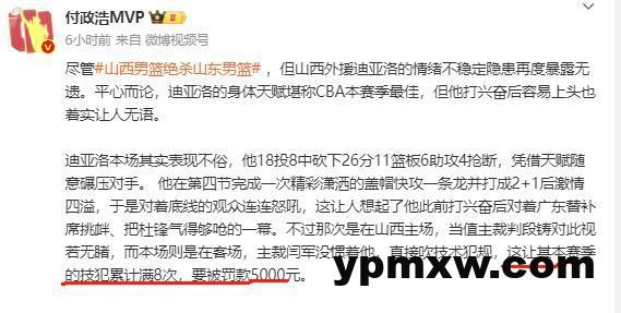 昨晚CBA有一场焦点之战,那就是山东与山西的强强对话,比赛过程迭宕起伏,打得难解难分,最后一秒钟才决出胜负,最终山西队在最后0.2秒绝杀山东,取得了4连胜。不过贾明儒投篮时两脚移动,已经走步,裁判没有看到。