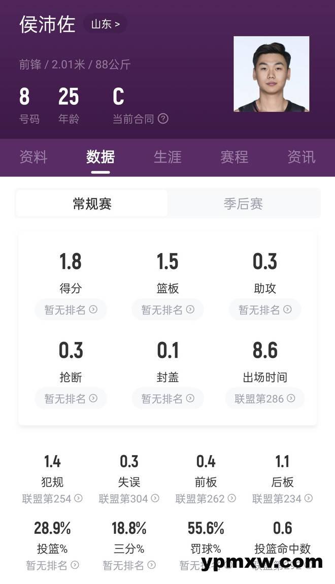 要知道,作为一名前锋,侯沛佐身高201cm,但是赛季场均只能得到1.8分1.5篮板0.3助攻,投篮命中率仅为28.9%,三分球命中率18.8%,罚球命中率55.6%,就是这么一位表现如此拉胯的混子球员,赛季竟然打了足足22场,而且他已经多次在比赛中证明自己不行,多次在关键时刻“帮助”球队憾负对手。但不知为何,主教练邱彪就是希望用他,甚至经常在关键比赛、关键时刻用他。输球不可怕,可怕的是以怎样的方式输球,这句话或许是山东球迷内心最好的映照吧!