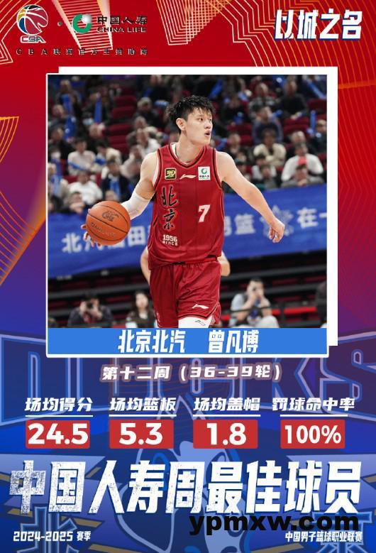 北京时间3月14日,CBA官方公布了常规赛第12周周最佳球员,北京北汽球员曾凡博(生涯首个周最佳)和北控外援里勒当选。