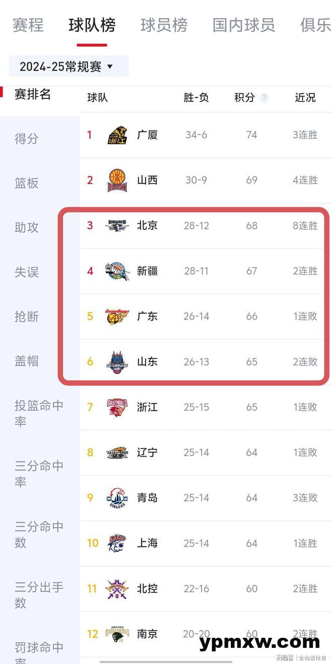 时下,CBA常规赛激战正甜,随着常规赛剩最后的7轮左右,常规赛排名越来越清晰可见,本赛季的常规赛4强球队,也初现端倪……