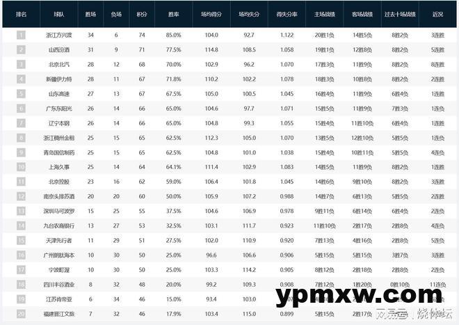 CBA积分榜
