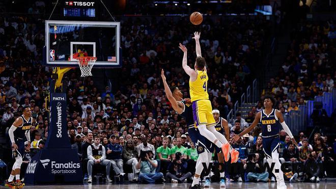 洛杉矶湖人队当地时间周五晚上连续第四场比赛失利,以 126-131 负于丹佛掘金队。尽管输了,但新秀道尔顿·克内希特再次表现出色,以他的得分创造了球队历史。