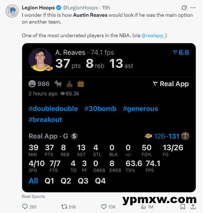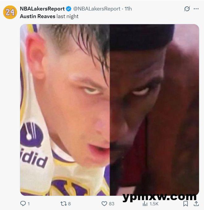 这场比赛奥斯汀-里夫斯再现了勒布朗当年的死亡之瞳,他在终场前1分12秒与55秒两次抢断帮助湖人反超3分之多,差一点里夫斯就帮助湖人拿下了最终的胜利,他太出色了。