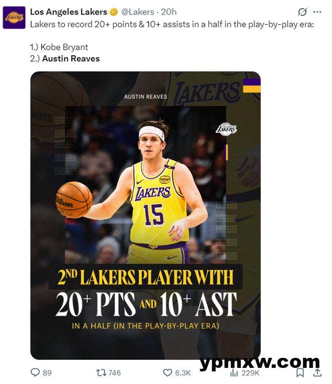 2.里夫斯成为湖人队史首位半场拿到20+10+5的球员;