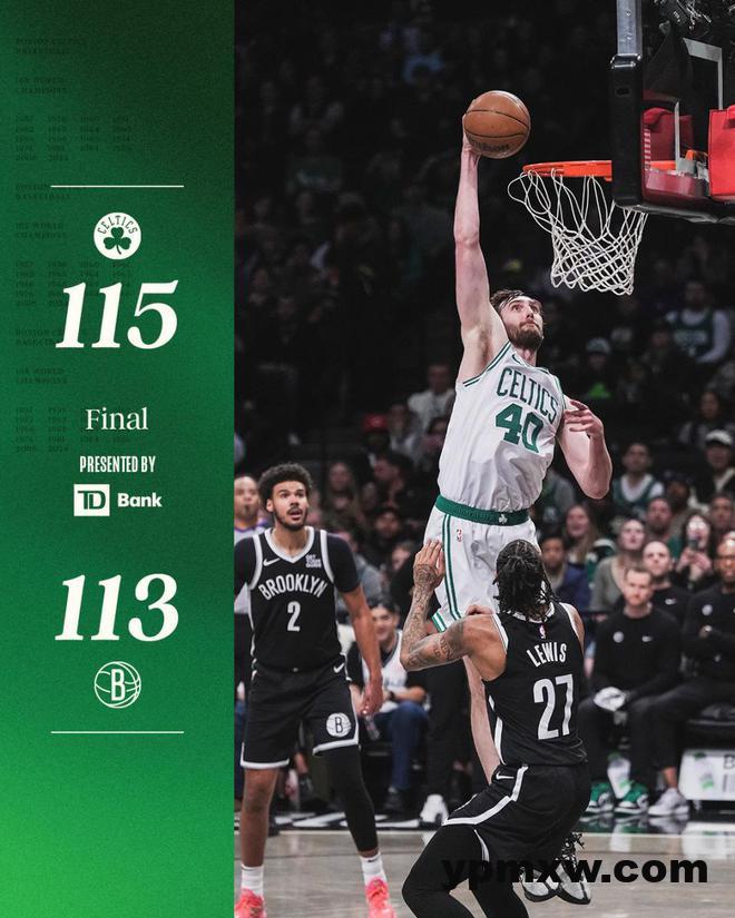 卫冕冠军这边也是逃过一劫,需要紧紧神才行,不能有任何松懈。这次波尔津吉斯迎来复出,16中9拿到24分,状态还是不错的。不过布朗的状态依然糟糕,8中3只拿到8分;塔图姆这边19中8拿到20分8篮板8助攻,霍勒迪这边拿到11分12助攻。