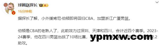 据媒体人“球圈赵探长”最新报道:“小外援肯尼·伯顿即将回归CBA,加盟浙江广厦男篮。”在孙铭徽第三阶段开局受伤之后,浙江广厦后场轮换就变得非常紧张,球队组织进攻确实需要人手,为了帮助布朗减轻一定的压力,浙江广厦火速签下了CBA老熟人伯顿。