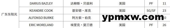 今晚19点35分,广东男篮将在客场对阵浙江男篮,队内目前的4名注册外援是贝兹利、库克、伯克和莫兰德。
