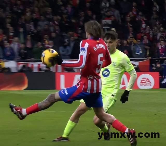 裁判认定进球有效,巴萨全队极为不满,佩德里、伊尼戈-马丁内斯等多人抗议:佩德里传球时,德保罗手球犯规。不过裁判认为,球权还在巴萨脚下,马竞得球之后反击破门,不再追溯手球。