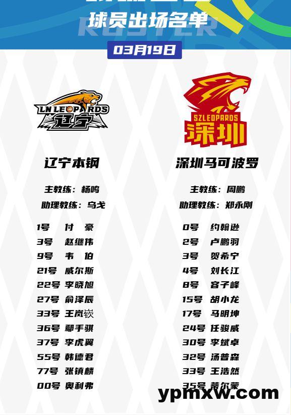 雷速体育3月19日讯 CBA常规赛继续进行,辽宁坐镇主场迎战深圳。赛前两队大名单出炉,以下是具体情况: