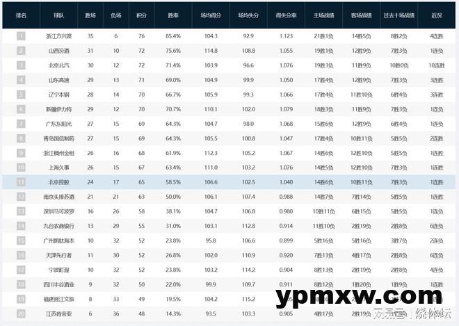 北控男篮客场获胜,总成绩提升到24胜积65分,排名仍是位居第11。福建男篮无缘连胜,目前积49分继续排名倒数第二,还是领先江苏队2个胜场。