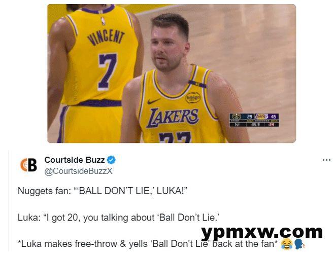 东契奇罚球时刻,掘金球迷连续大喊:“篮球不撒谎!卢卡!”东契奇无奈回应。