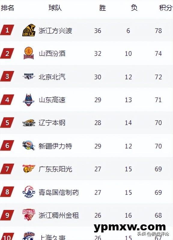 山东目前以29胜13负的战绩排在第四,不过第五的辽宁,第六的新疆,甚至后面广东,青岛都具备反超的可能性,山东接下来要打江苏,四川,新疆,辽宁能否稳住前四的排名值得外界的关注。
