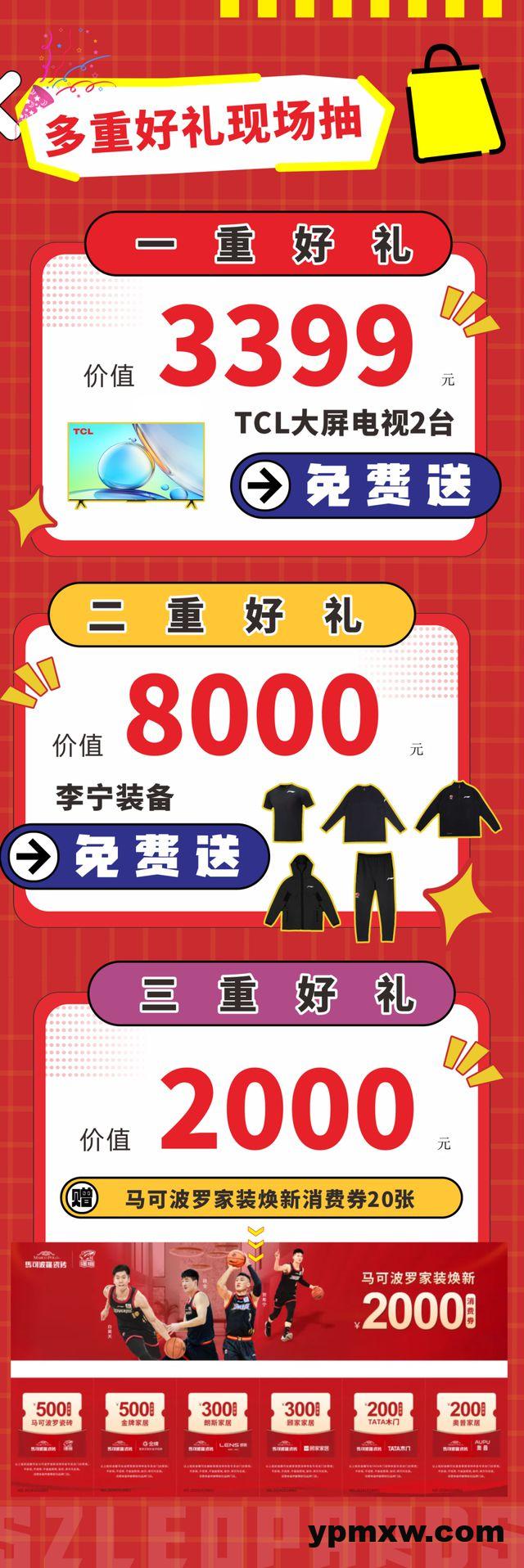 本赛季俱乐部携手TCL、李宁和马可波罗,精心准备了一系列惊喜活动。比赛间歇,幸运球迷将有机会获得TCL大屏电视、价值8000元李宁装备、价值千元马可波罗家装优惠券等豪华大奖。