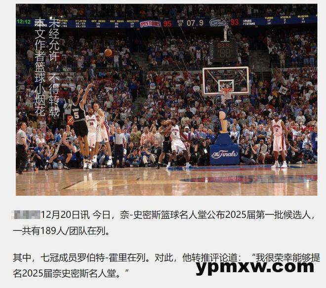 多插一句话,在上一篇文章中,我说霍里开着半挂给评委送水果都进不去名人堂,马上就有榜一大哥给我发了一条消息,说霍里提名了2025年的名人堂人选,我只想说,这位大哥你的消息还是迟滞了很多。
