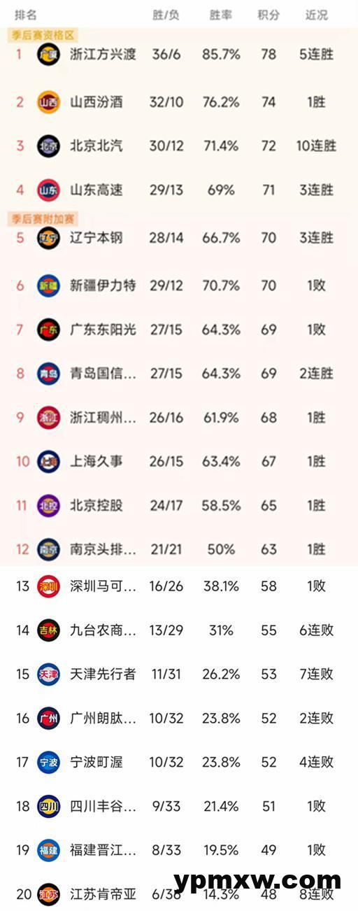北京时间3月21日,CBA常规赛第42轮结束了所有比赛,我们一起看看最新的积分榜变动!目前的格局是前12名出炉,广厦和山西前二的位置稳定,3-10名的卡位战还比较激烈。