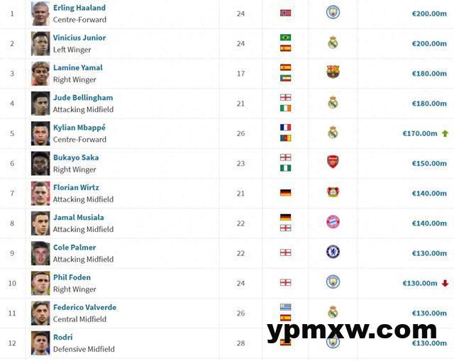 世界前十身价↓