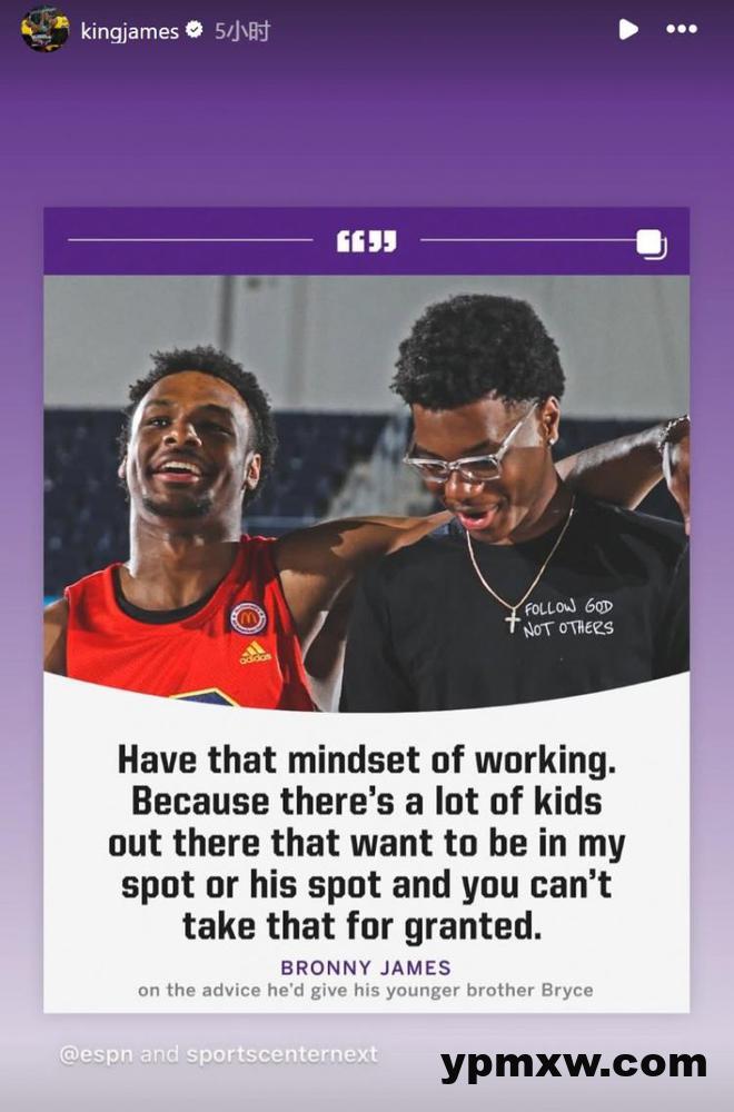 谈到给弟弟布莱斯的建议,布朗尼说道:“以前,我主要告诉他打得开心,打自己的比赛,对自己有信心。我已经成年了,他现在还没有,要有努力训练的心态,别把这当做理所当然的,因为有很多人想站在我们的位置上。就是持续努力。”