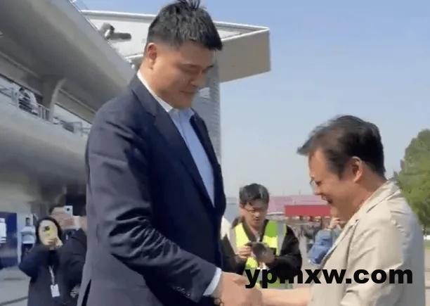 姚明和范志毅在F1围场同框,两人握手寒暄。