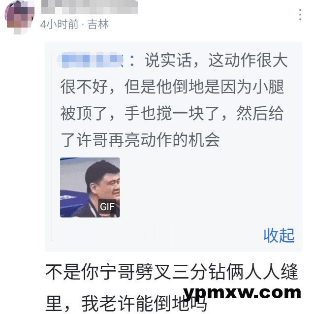 还有球迷通过一帧一帧的慢镜头回放,认为张宁有夹臂、压腿许钟豪的动作,不怪老许可不惯着他。