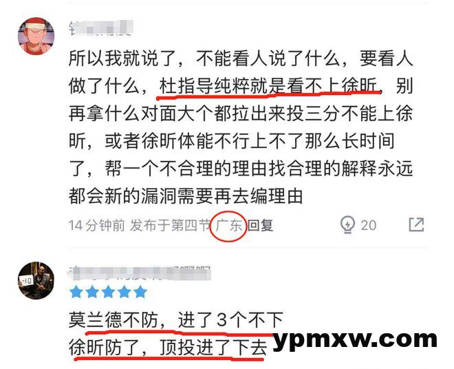 广东队在本赛季周琦离开后,大多数球迷都认为杜锋会就此重用徐昕,让他去扛起禁区重担。然而广东却签下多名大外援,至于徐昕,则是被杜锋直接忽视,所以不少广东球迷也对徐昕被冷落打抱不平。在本轮广东以20分大胜宁波的比赛中,徐昕虽然有所出场,但却只有全队最少的3分钟。
