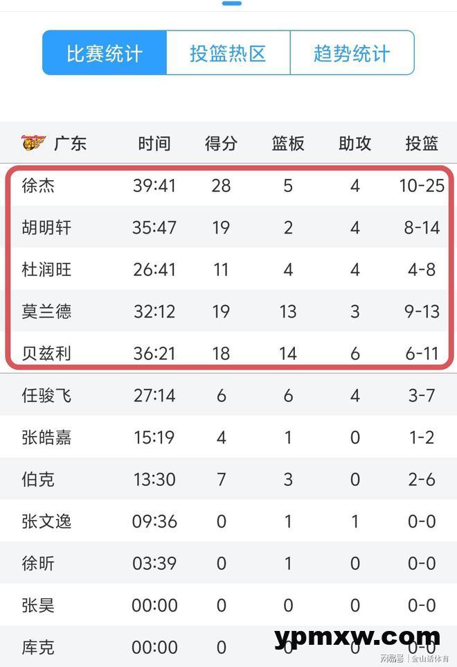 “一顺则百顺”,杜锋的这一个重要改变,彻底将5名主力球员激活了。此役,先发五虎个个表现出色得分上双,徐杰出场40分钟,拿下28分5板4助3断;莫兰德出场32分钟,拿下19分13板3助2断2帽;胡明轩出场36分钟,拿下19分2板4助2断;贝兹利出场36分钟,拿下18分14板6助3断4帽;杜润旺出场26分钟,11分4板4助。5名首发球员,联手轰下了95分,集体表现炸裂。