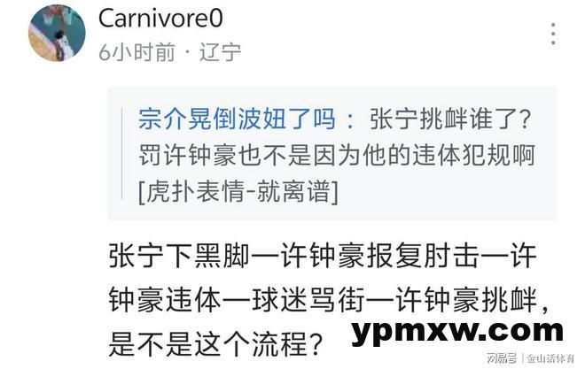 许多网友认为“张宁不罚?”;“那好啊,所以整个冲突所有环节都要罚,那为什么张宁不罚”;“许钟豪肘击前不是张宁先顶人?”;“张宁下黑脚-许钟豪报复肘击-许钟豪违体-球迷骂街-许钟豪挑衅,是不是这个流程?”;“好好看一下视频,没有伸腿没有夹臂,也没有后面的那么多。”……