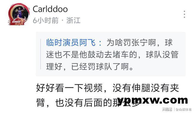 值得一提的是,在这份罚单中,本此事件当事人之一的张宁,没有受到任何处罚。当晚,张宁在比赛读秒阶段强投三分时,有明显的踢腿动作,在倒地期间又出现夹对手手臂动作,从而引发冲突。尽管张宁这两个动作,被当值裁判视而不见。但CBA公司的这份罚单中,同样也被忽略。而张宁在这次事件中平安无事,也让许多球迷感到失望。