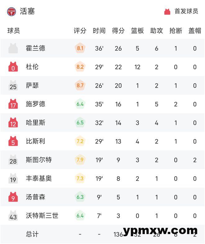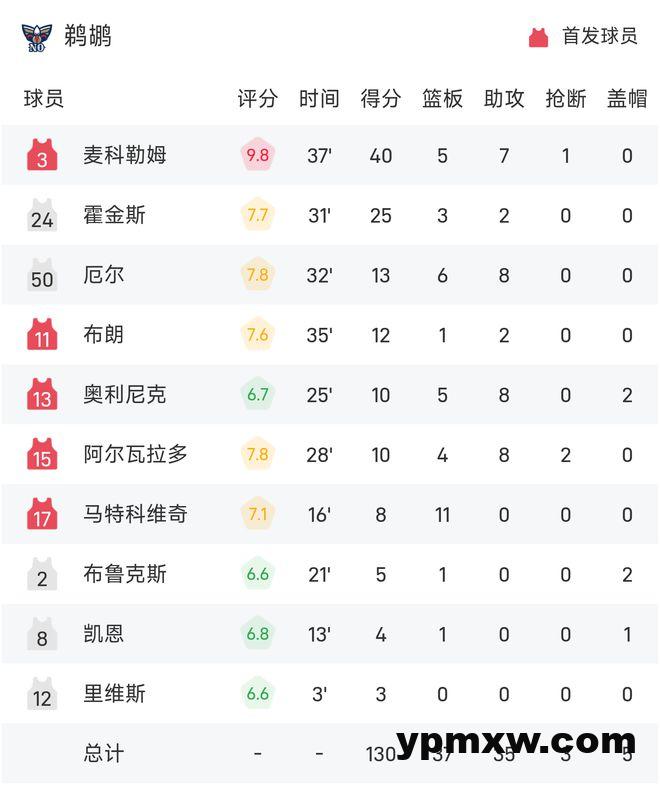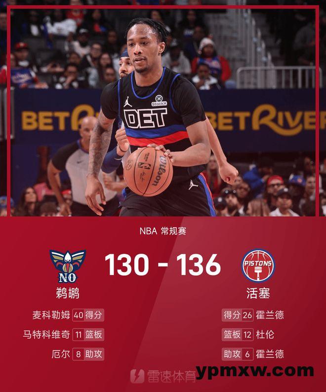 NBA战报:麦科勒姆空砍40分,活塞三人得分20+以136-130力克鹈鹕