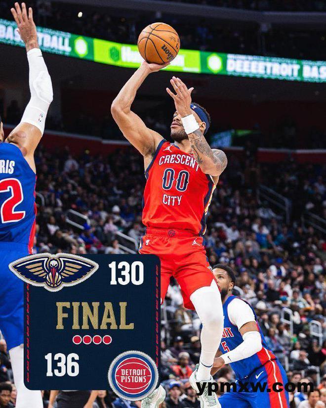 及至末节比赛,双方进攻火力大幅升级,末节均是轰下39+得分,且疯狂对攻单节合计狂轰82分。活塞一度在连续命中三分,也是挡住鹈鹕的顽强追分,施罗德最后时刻命中关键三分,末节活塞43-39再赢4分,最终活塞136-130险胜鹈鹕。