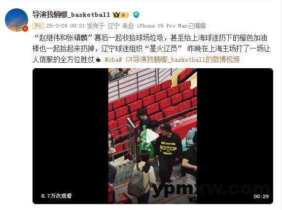 从视频内容来看,两位身穿“赵继伟和张镇麟”球衣的女球迷,在一起收拾球场垃圾,同时还捡起了上海球迷扔下的橙色加油棒,不得不说辽宁球迷真的很棒,这是辽宁男篮精神所在,也是辽宁男篮俱乐部文化的集中展示。