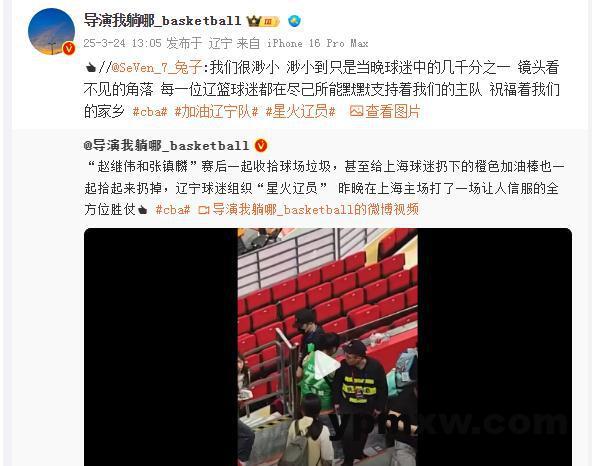其实在场比赛之后,赛后也上演感人温馨一幕,辽宁球迷太给力了。赛后据辽宁媒体人“导演”发文,他表示:“赵继伟和张镇麟”赛后一起收拾球场垃圾,甚至给上海球迷扔下的橙色加油棒也一起拾起来扔掉,辽宁球迷组织在上海主场打了一场让人信服的全方位胜仗。