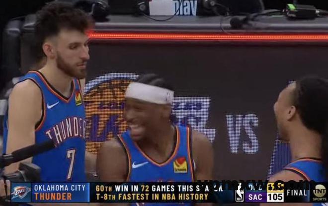 直播吧3月26日讯 NBA常规赛,雷霆赛季3-0横扫国王,战绩来到60胜12负。