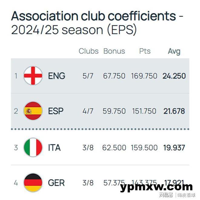 从欧足联的积分榜来看,英超基本锁定单赛季的前两名,西甲领先意甲的优势也很大,两个联赛的第五名,可以参加下赛季的欧冠。上赛季获得5个欧冠资格的意甲和德甲,只能回到传统的四个名额当中。