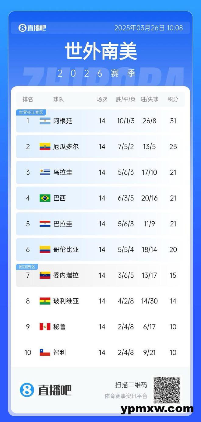 直播吧03月27日讯 南美区世预赛,厄瓜多尔表现十分亮眼,他们在扣除3分的情况下仍居南美第2。
