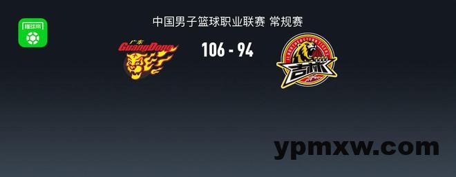 第四节广东任骏飞拿下12分,吉林姜伟泽拿下13分,最终广东106-94战胜吉林