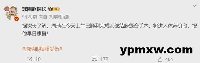原来是在近日结束的北京队99-106不敌浙江队比赛中,周琦一次争抢篮板过程中被对手打到眼睛。