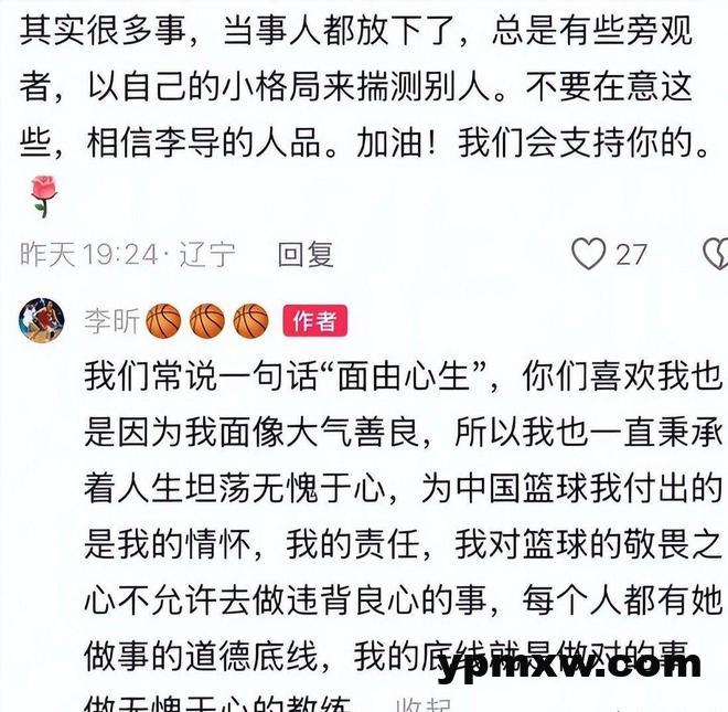 作为老一辈篮球人,李昕期待中国女篮取得好成绩,并强调自己做事问心无愧。