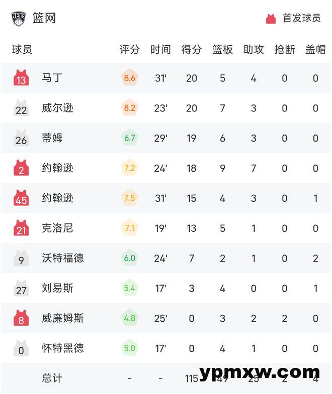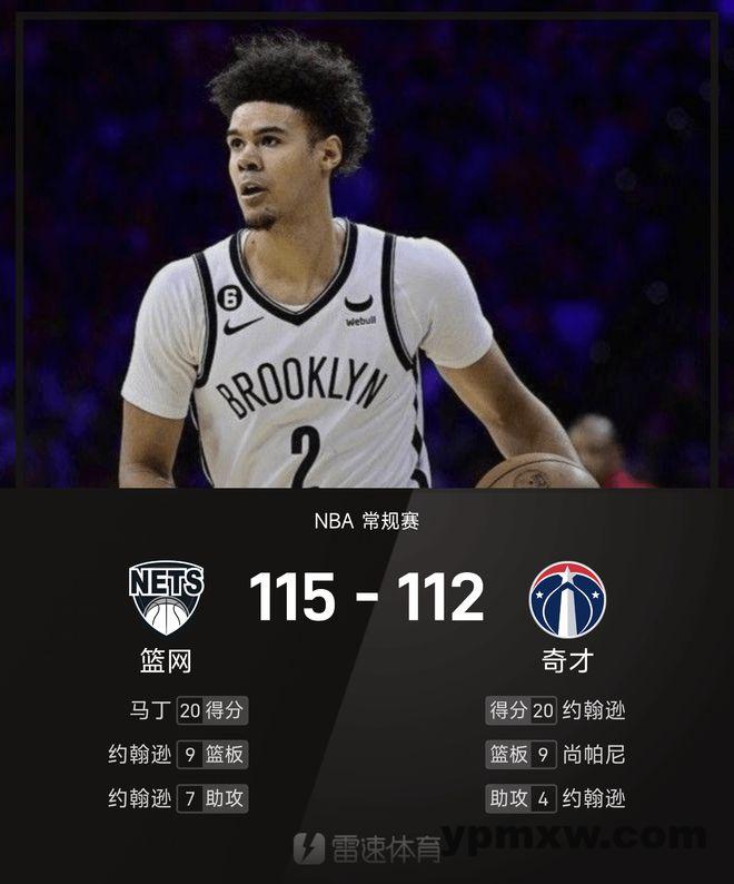 NBA战报:约翰逊18分,德鲁·蒂米19分准绝杀,篮网115-112奇才