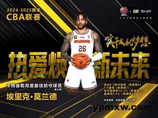 除了徐杰,广东外援莫兰德也收到了一份大礼,荣获本赛季第三期月度最佳防守球员。莫兰德从辽宁来到广东队后,变化很大,不断进化。在评选期内,莫兰德场均抢下8.5个防守篮板,防守篮板率为30.5%;场均送出1.6个盖帽,盖帽率为6.0%,这些数据均名列前茅,他当选“月度最佳防守球员”也是顺理成章,当之无愧。莫兰德成为广东队大闸,提升了篮框保护,广东队一度豪取9连胜,并重回正轨,有着莫兰德的贡献分不开。本赛季莫兰德的得分、篮板、助攻均比上赛季有大幅度的提高。