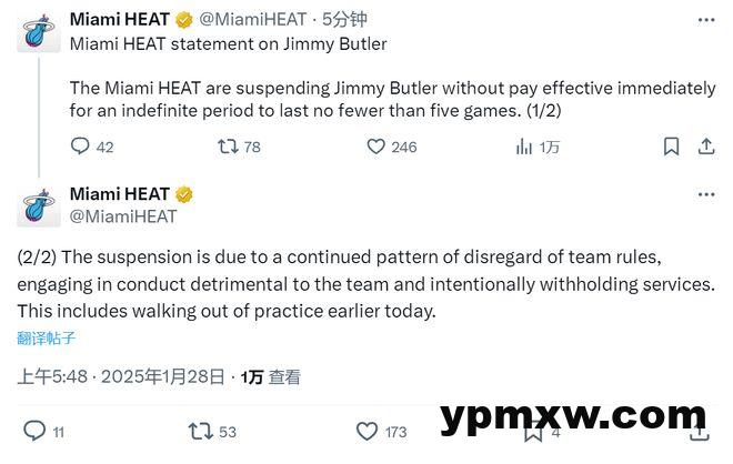 NBA薪资专家Bobby Marks表示,巴特勒这次被禁赛,至少损失266万美元。再加上此前两次被禁赛,巴特勒一共损失576万美元。这不仅是本赛季最大的闹剧,放眼NBA历史也是相当炸裂。当年安东尼和掘金闹翻,也没这么离谱。