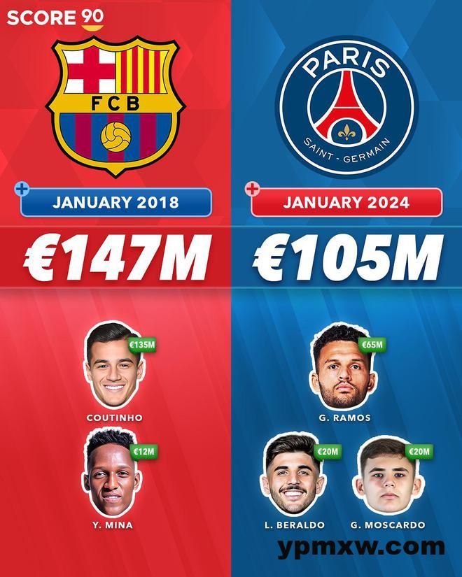 4.巴黎圣日耳曼:2024年冬窗花费1.05亿欧,签下贡萨洛-拉莫斯、贝拉尔多、莫斯卡多
