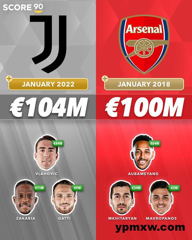 5.尤文图斯:2022年冬窗花费1.04亿欧,签下弗拉霍维奇、扎卡里亚、加蒂