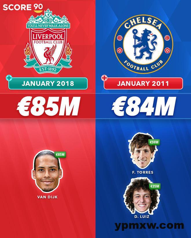 7.利物浦:2018年冬窗花费8500万欧,签下范迪克